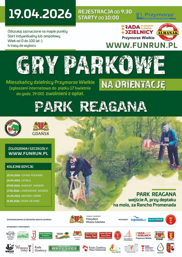 Jak połączyć ruch na świeżym powietrzu z dobrą zabawą i nutą przygody? Odpowiedzią jest FunRun FunRun Zabawa z Mapą – aktywna przygoda dla każdego w Parku Reagana z Mapą – cykl rekreacyjno-sportowych wydarzeń na orientację, które od lat przyciągają mieszkańców Trójmiasta. Już 19 kwietnia w Park Reagana odbędzie się kolejna edycja tej wyjątkowej imprezy, organizowanej przez Stowarzyszenie Almanak oraz Radę Dzielnicy Przymorze Wielkie.
