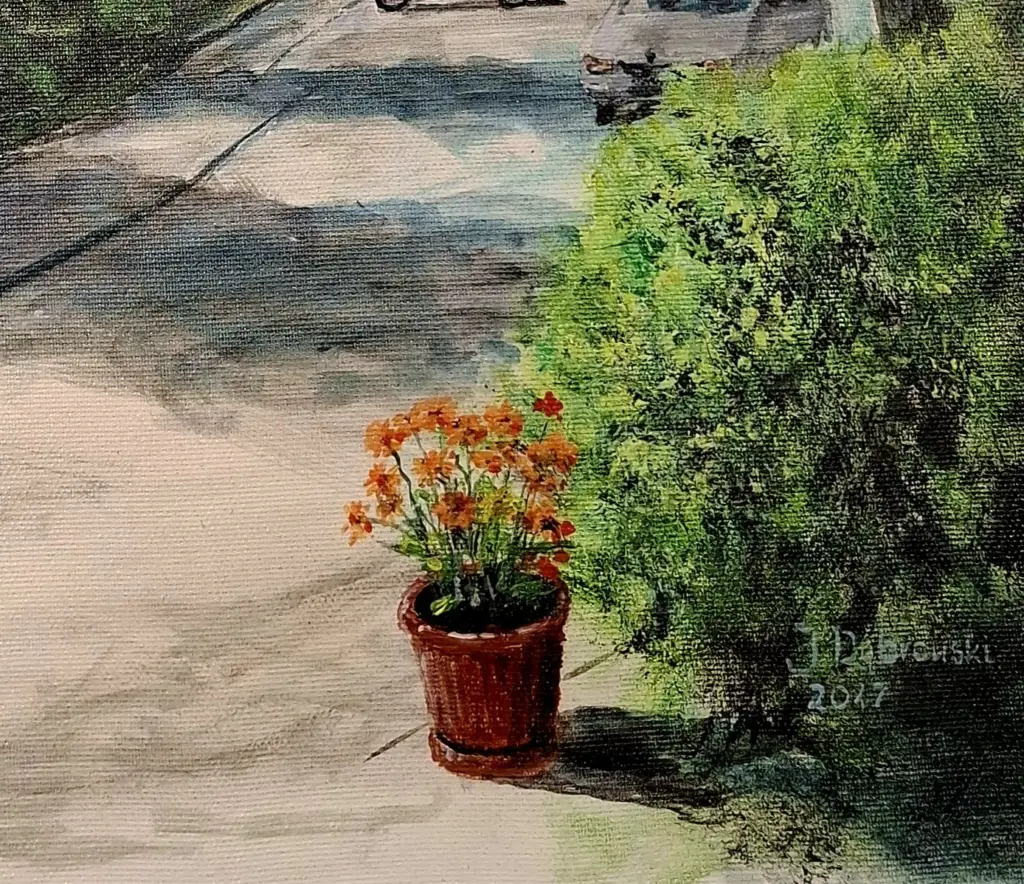 Do malarstwa powrócił dopiero po przejściu na emeryturę. Od 2013 roku intensywnie rozwija swoją twórczość, eksperymentując z różnymi technikami i formami wyrazu. W jego pracach wyraźnie widoczna jest precyzja wynikająca z doświadczenia w rysunku technicznym – szczególnie w sposobie przedstawiania perspektywy, proporcji i geometrii przestrzeni. Dzięki temu miejskie pejzaże nabierają uporządkowanej, harmonijnej konstrukcji, a jednocześnie zachowują malarską lekkość i emocjonalny charakter.